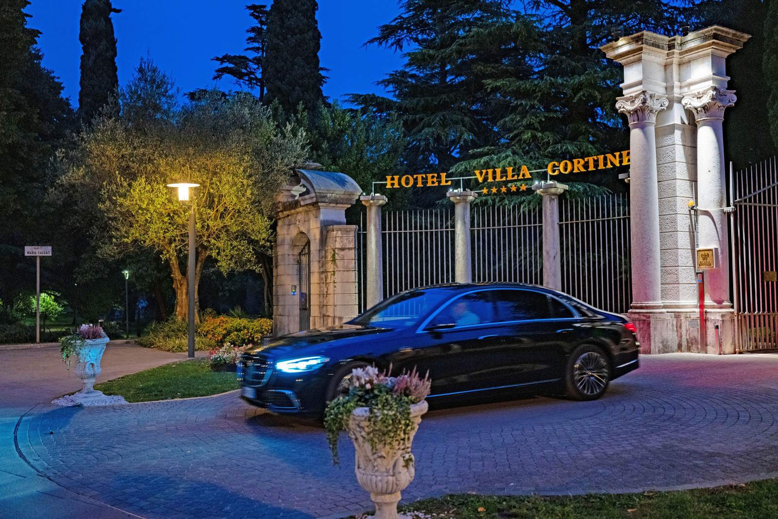 Auch wenn Touristen, die heute nach Sirmione kommen, nicht direkt in die Villa Callas hineinkönnen, so gibt es doch gleich gegenüber eine Villa, die die glanzvollen Zeiten der Diva bis ins Heute weiterleben lässt und ihre Gäste mit eben der Ruhe und Szenerie verwöhnt, die Maria Callas trotz der Höhen und Tiefen in ihrem Leben in Sirmione gefunden hat. Das Hotel „Villa Cortine Palace“ hat seinen Ursprung im 19. Jahrhundert, als der preußische Staatsmann Kurt von Koseritz 1890 eine neoklassizistische Villa hier auf den Hügeln von Sirmione errichten ließ, umrahmt von einem weitläufigen Park mit Zypressen, Palmen und Statuen. Bereits zu Zeiten von Callas und Meneghini als Nachbarn 1953 wandelte sich die Villa Cortine vom Privatbesitz zum Luxushotel, das bis heute den aristokratischen Charme nicht verloren hat.