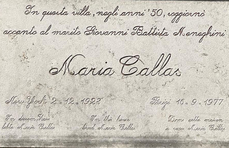 Seit Oktober 2024 gehört das Haus zur renommierten Vereinigung „Relais und Châteaux“, was den Status als „Haus mit besonderem kulturellen, kulinarischen und natürlichen Erbe“ offiziell anerkennt. Außerdem wurde der Villa ein „Chiave Michelin“ für ihre Hotelqualität verliehen. Von hier aus braucht man wenig Fantasie, um sich in die Geschichte der Callas zu versetzen, und nur wenige Schritte, bis man tatsächlich auf ihren Spuren wandelt. Neben ihrer Villa mit der Plakette wurde ihr ein ganzer Park gewidmet. Oft finden Konzerte und Kulturveranstaltungen ihr zu Ehren statt. Zum 100. Geburtstag der Callas gab es Festivitäten, die sich über den Zeitraum von drei Jahren erstreckten.